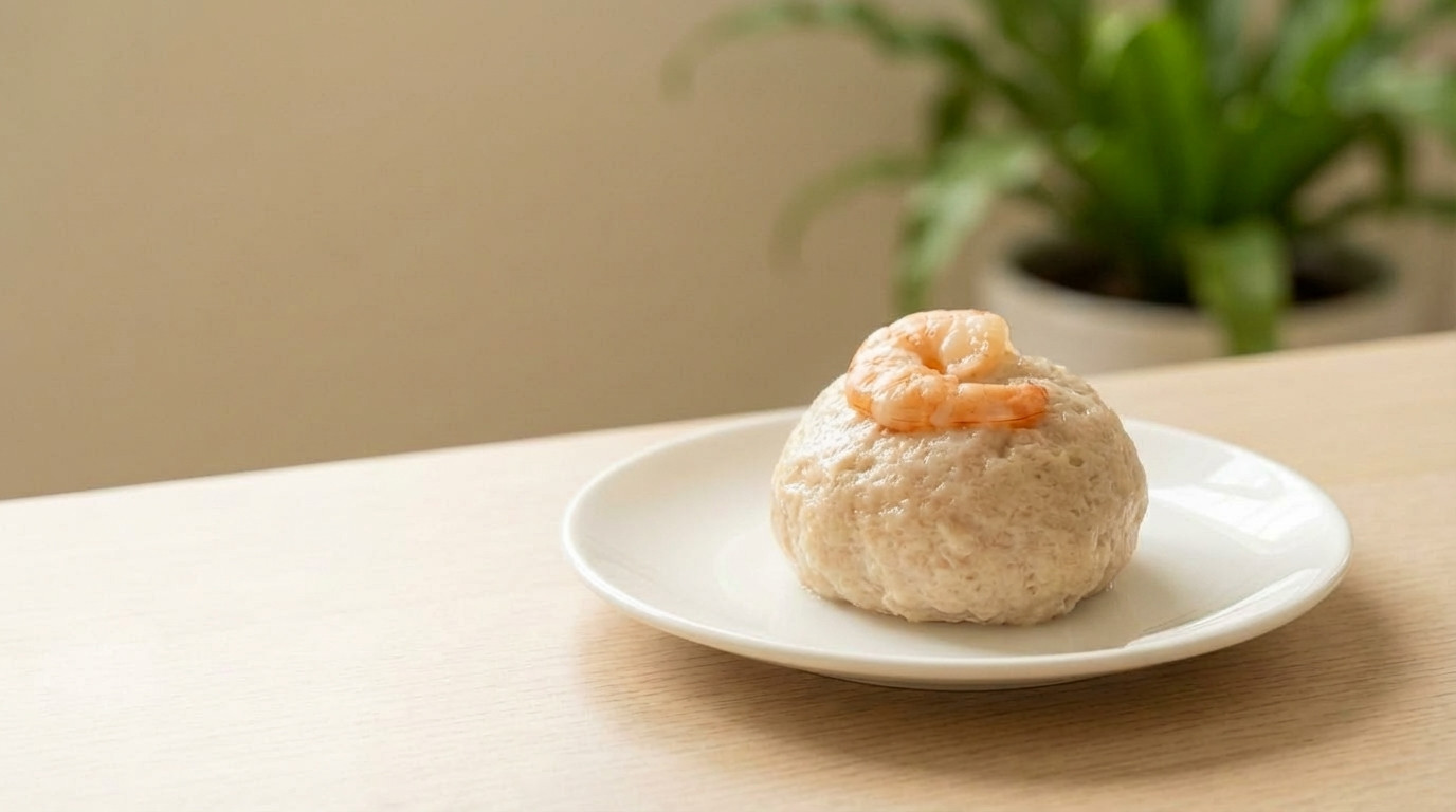 香氣來自雞肉加熱後溫和的肉香,搭配鮮蝦本身淡淡的海味層次。